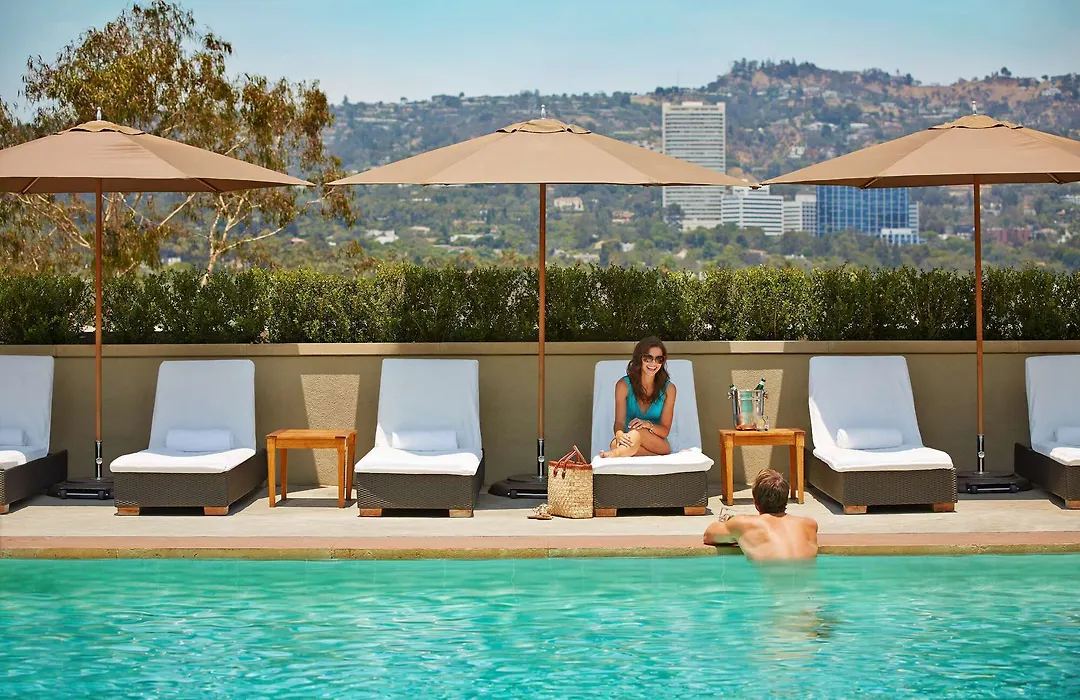 L'Ermitage Beverly Hills is a luxurious all-suite hotel rated 9.4/10 on Booking.com, featuring modern amenities and a rooftop pool with panoramic city views. Guests benefit from 24-hour room service and a complimentary car service within a 2-mile radius, catering to discerning travelers seeking elegance and privacy.