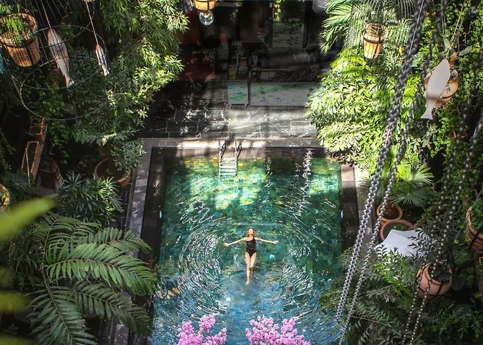 Manon Les Suites Guldsmeden offers a unique tropical oasis experience in the vibrant center of Copenhagen with its Bali-inspired Junglefish Pool. This exclusive 5-star hotel features on-site dining, a spa, a fitness center, and eco-friendly practices throughout its facilities.