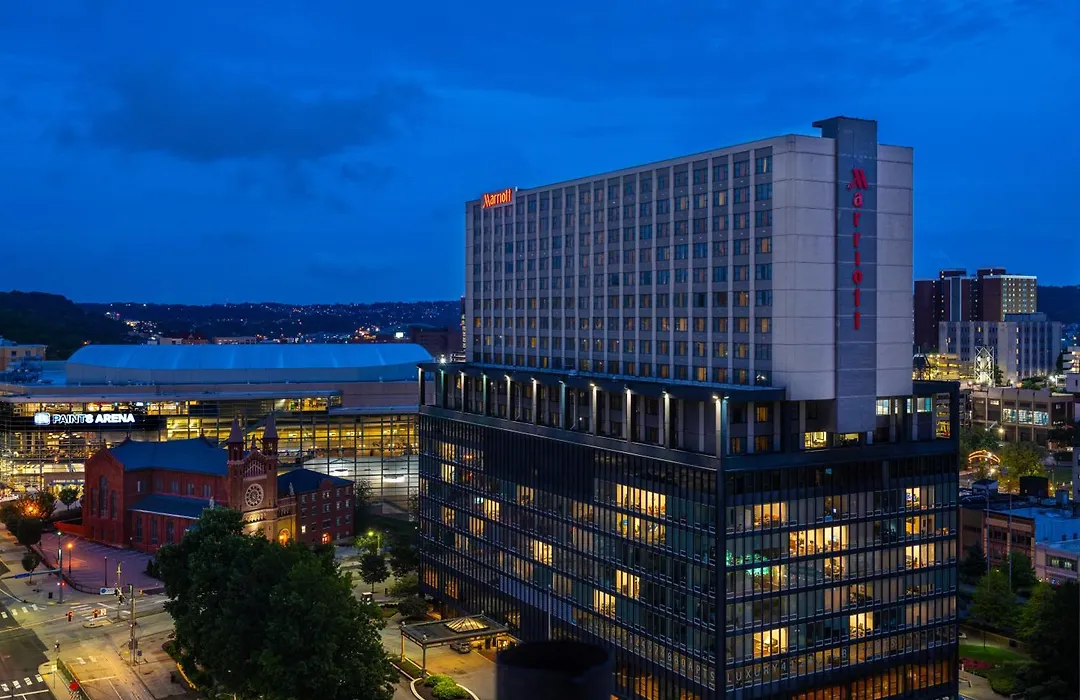 Pittsburgh Marriott City Center features modern accommodations and expansive meeting spaces, making it ideal for both business and leisure travelers. This 4-star Pittsburgh hotel is located near popular attractions such as PPG Paints Arena and Acrisure Stadium and provides amenities like a heated indoor pool and a state-of-the-art fitness center.