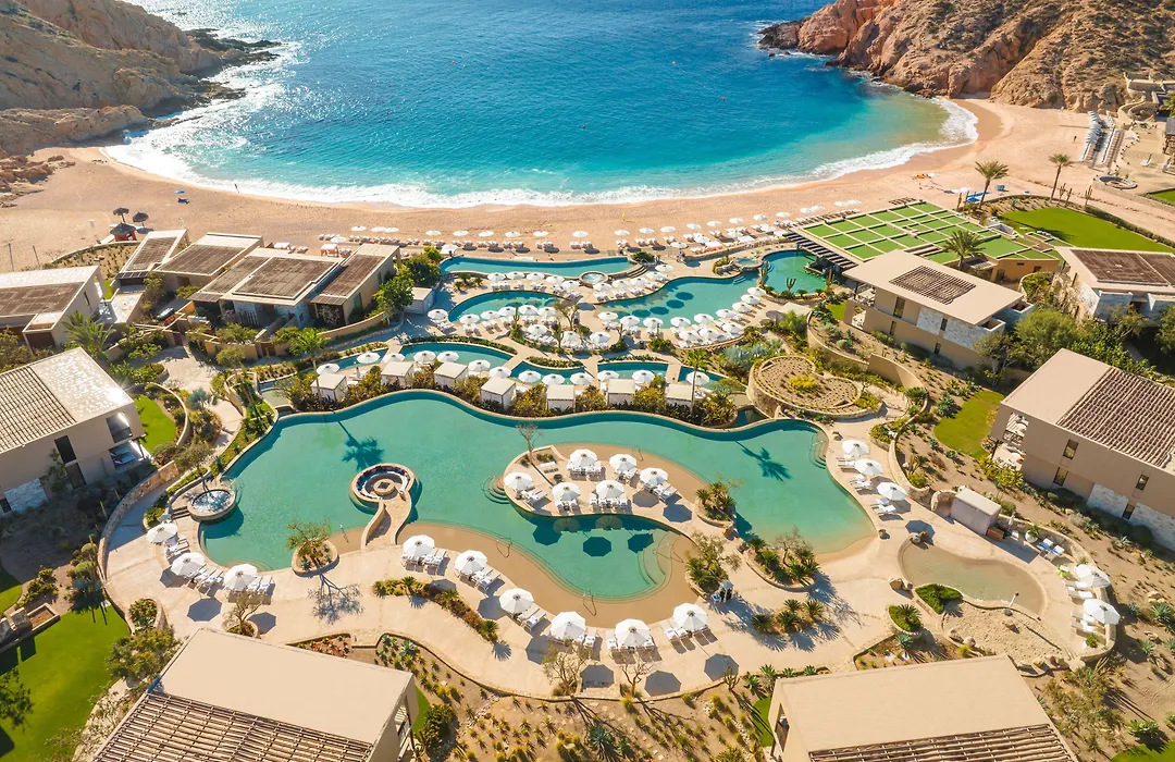 Montage Los Cabos, a 5-star resort with a 9.8/10 rating on Booking.com, is situated along Santa Maria Bay, offering direct beachfront access and impressive amenities including a signature Spa Montage and a culinary journey through Baja-inspired cuisine. This luxury Cabo San Lucas hotel also features 122 expansive guestrooms, suites, casas, and 52 Montage Residences, all designed to cater to diverse guest needs.