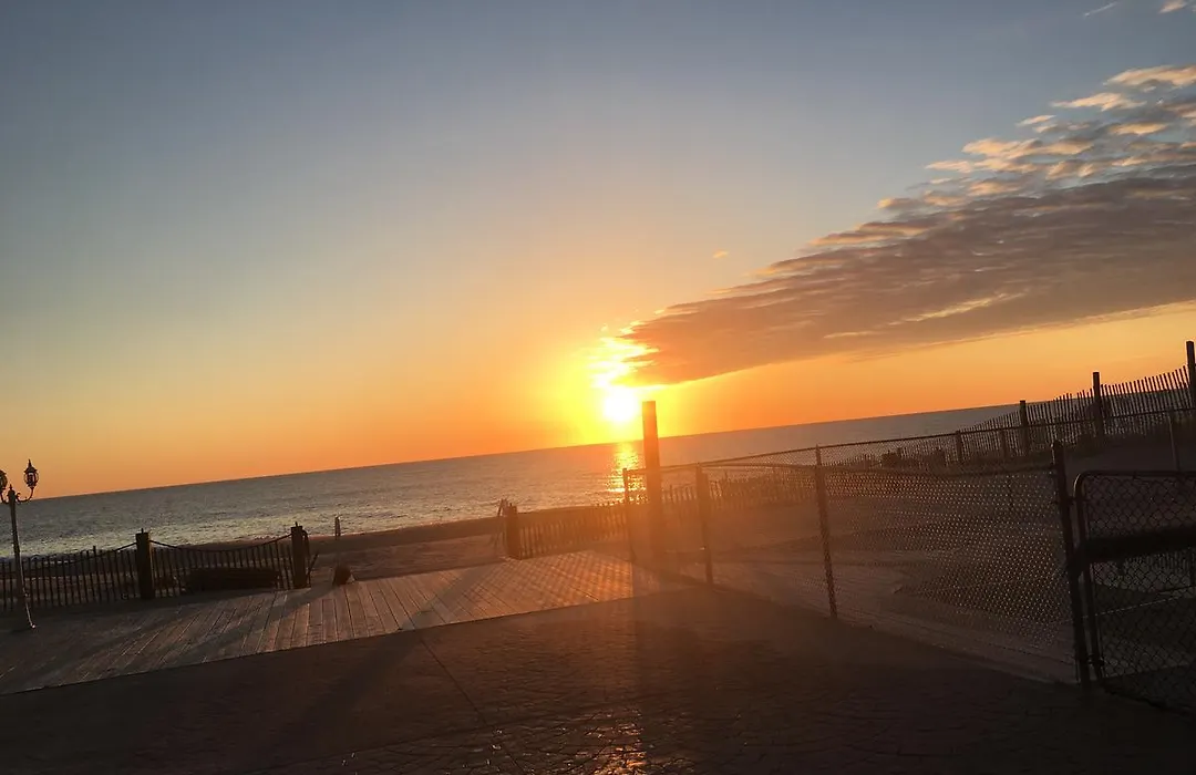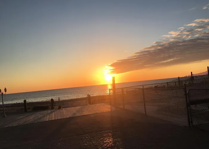 Guests enjoy a private beach with clean sand and clear waters, as well as a heated pool and patio area for relaxation. Nearby attractions include Jenkinson's Aquarium and Point Pleasant Boardwalk, both within 1 miles.