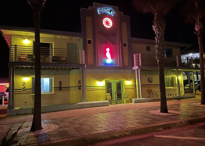 Magic Beach Motel - Vilano Beach, Saint Augustine is a 3-star accommodation featuring an outdoor pool and free Wi-Fi throughout. The motel offers a retro experience with fully renovated rooms and unique artistic murals. This St. Augustine hotel is steps from Vilano Beach and accommodates families with various room types including Jacuzzi options.