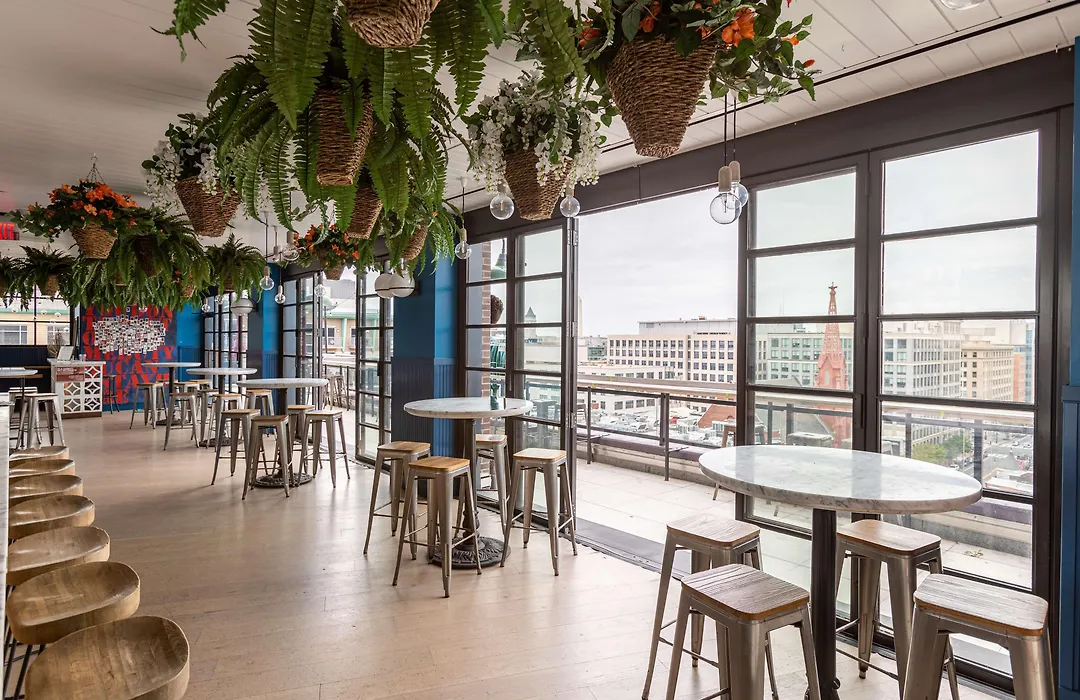 Guests can enjoy dining at Crimson Diner, known for its southern comfort cuisine, including a popular fried chicken sandwich. The hotel also offers a rooftop bar, Crimson View, which provides clear vistas of the Washington Monument.