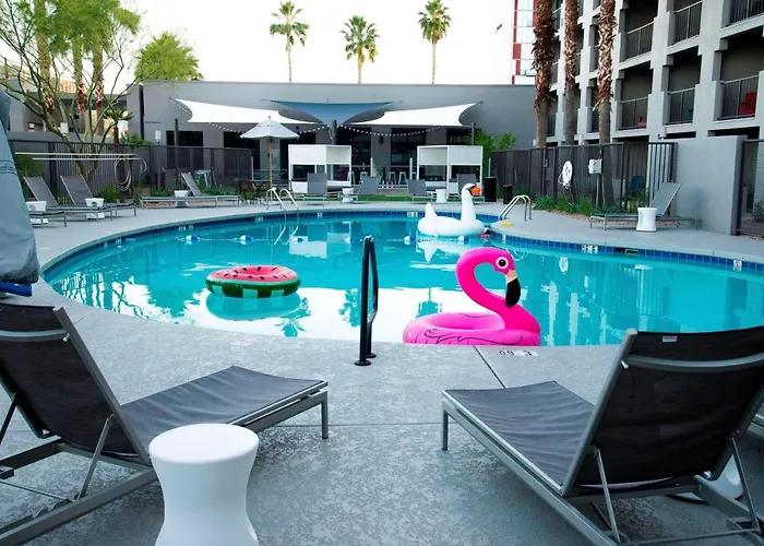 For recreation, guests can enjoy the outdoor pool, equipped with day beds and sun loungers. Nearby attractions include Tempe Town Lake, Desert Botanical Garden, and Camelback Mountain for outdoor enthusiasts.