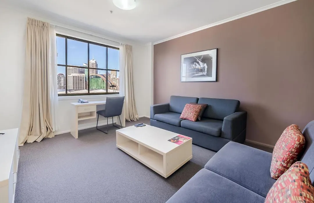 Oaks Sydney Goldsbrough Suites offers apartment-style accommodations within a heritage-listed building from the 1800s, featuring modern amenities and stunning skyline views. This 4-star Sydney hotel encompasses a spacious indoor pool, fitness center, and dining options including in-room service.