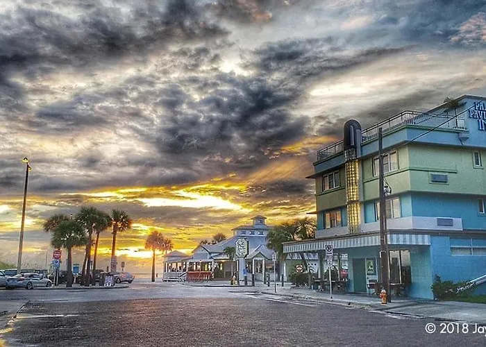 Palm Pavilion Inn, a 2-star Clearwater Beach hotel rated 8.8/10 on Booking.com, features a beachfront location with casual dining options. The property includes outdoor seating areas, a heated swimming pool, and proximity to beach activities.
