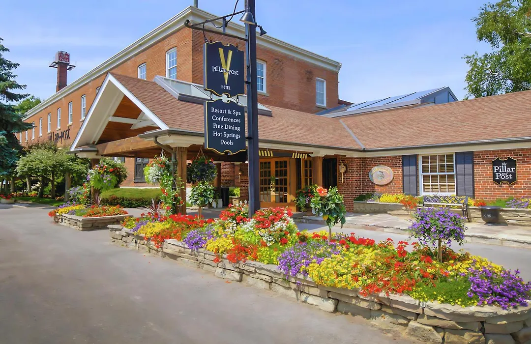Pillar And Post Inn & Spa offers modern amenities alongside a historic rustic charm in Niagara-on-the-Lake. This 4-star hotel features a 13000 square-foot spa and a fine dining restaurant known for serving the best steak in the area. Guests can indulge in the comforts of well-appointed rooms equipped with king, queen, or two double beds.