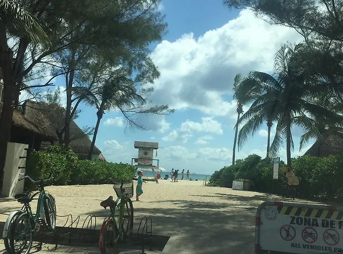 Nearby attractions include Quinta Alegría Shopping Mall, Playa del Carmen Beach, and various local restaurants. Public transportation options like colectivos and buses are available within walking distance.