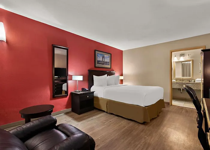 An on-site restaurant offers various dining options, while complimentary hot breakfast includes waffles and eggs. Nearby dining options include Red Lobster and TGI Fridays, both within 2.5 miles.