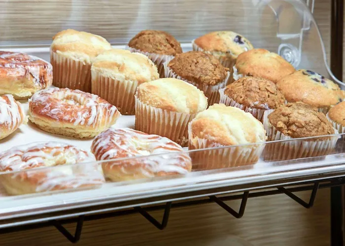 A free hot breakfast buffet is offered each morning. Nearby dining options include Taco Bell, Domino's Pizza, and Fresh Harvest Cafe, all within 0.5 miles.