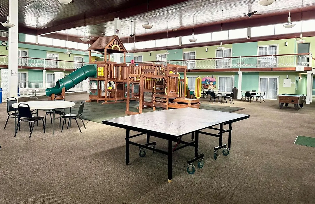 Recreational amenities include a game room with pool and air hockey. For those interested in outdoor activities, approximately 100 lakes offer opportunities for boating and fishing.