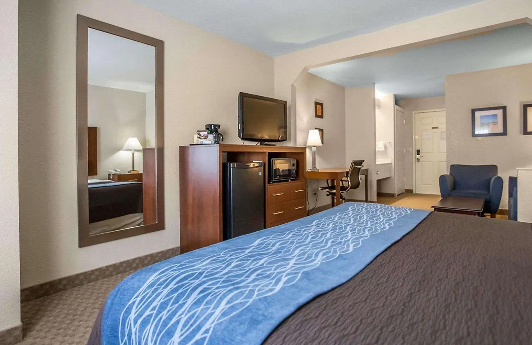 Guest rooms at Quality Inn & Suites Dixon offer essential amenities including a TV, microwave, refrigerator, coffee maker, and private bathrooms with hair dryers. The hotel also provides free weekday newspapers and complimentary coffee.