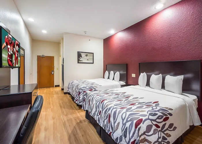 Red Roof Inn Ocala is a 2-star pet-friendly hotel featuring an outdoor swimming pool and fitness center. Guests enjoy free WiFi, flat-screen TVs, and microwaves in select rooms, making it a good choice for exploring Ocala.