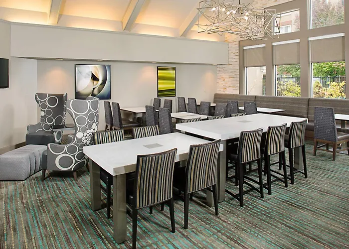Dining options near Residence Inn include Fleming's Prime Steakhouse & Wine Bar and Mitchell's Fish Market, both just 0.5 miles away. A daily breakfast buffet with hot waffles, fresh pastries, and seasonal fruits is served in the hotel lounge. Guests also have access to barbeque facilities for casual meals.