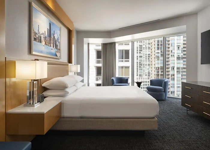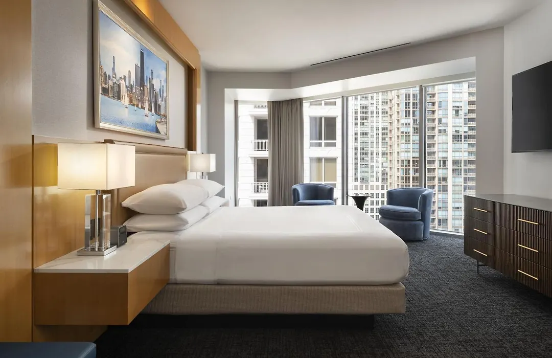 The hotel is a short walk from various transportation options including the Grand and Chicago subway stations. Nearby landmarks include the Willis Tower, 360 Chicago Observation Deck, and the Navy Pier, making it suitable for business and leisure travelers alike.