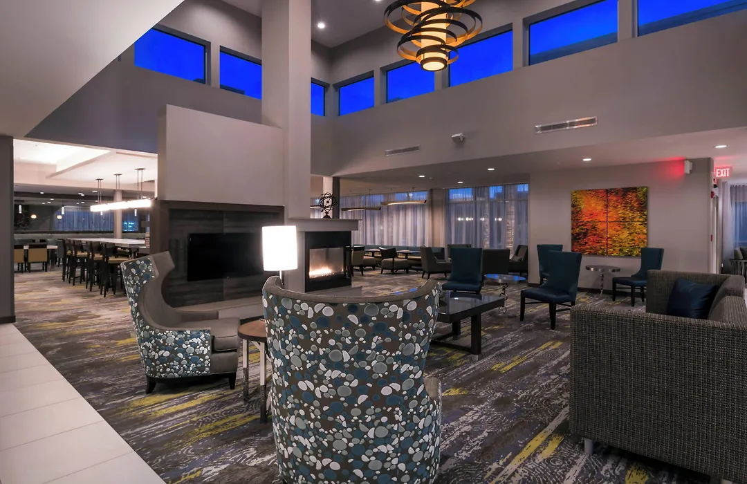 The Residence Inn offers 91 air-conditioned rooms with kitchenettes, including full-sized refrigerators, stovetops, and coffee machines. Certain accommodations feature a living area, while all rooms are equipped with flat-screen TVs and complimentary toiletries.