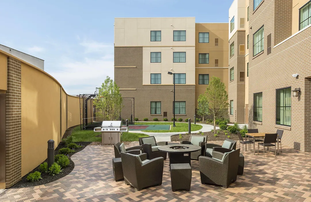 Leisure amenities at the Residence Inn include a 24-hour fitness center and a Sport Court for basketball. Guests can unwind in the hot tub after a workout.
