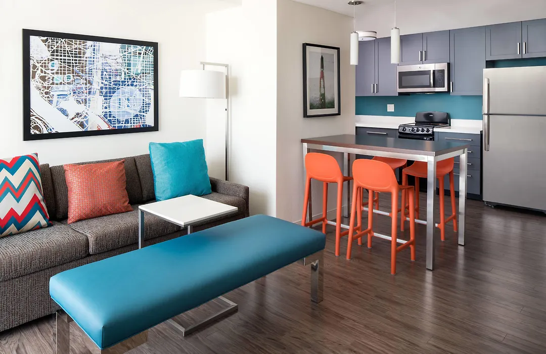 Residence Inn Washington Capitol Hill/Navy Yard is a 3-star hotel located in the vibrant Navy Yard neighborhood. This pet-friendly hotel features 170 spacious suites, free Wi-Fi, a fitness center, and full kitchens in each room. Guests can enjoy signature Distinguished Hospitality from the staff and a complimentary breakfast during their stay.