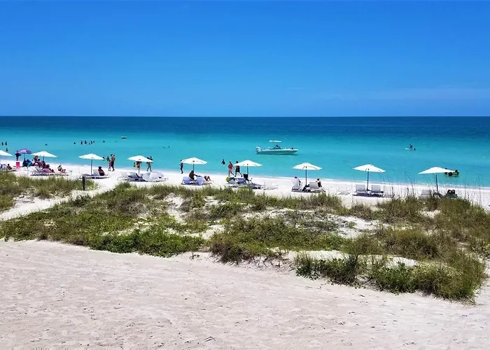 Bali Hai Beachfront Resort And Spa offers a beachfront experience on Anna Maria Island with direct access to 300 feet of sugary white sand. This 3-star Holmes Beach hotel features modern amenities, a heated pool, and access to the on-site Spa by Sea & Sol. Ideal for family vacations and romantic getaways, it also includes a full-service Bali Hai Lounge.