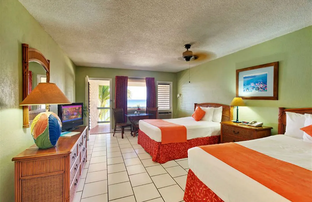 Each of the 65 spacious guestrooms at Bolongo Bay features a private balcony that provides picturesque views of the Caribbean Sea and easy beach access. Rooms are designed for comfort and leisure, equipped with air conditioning, free Wi-Fi, and eco-friendly bath amenities.