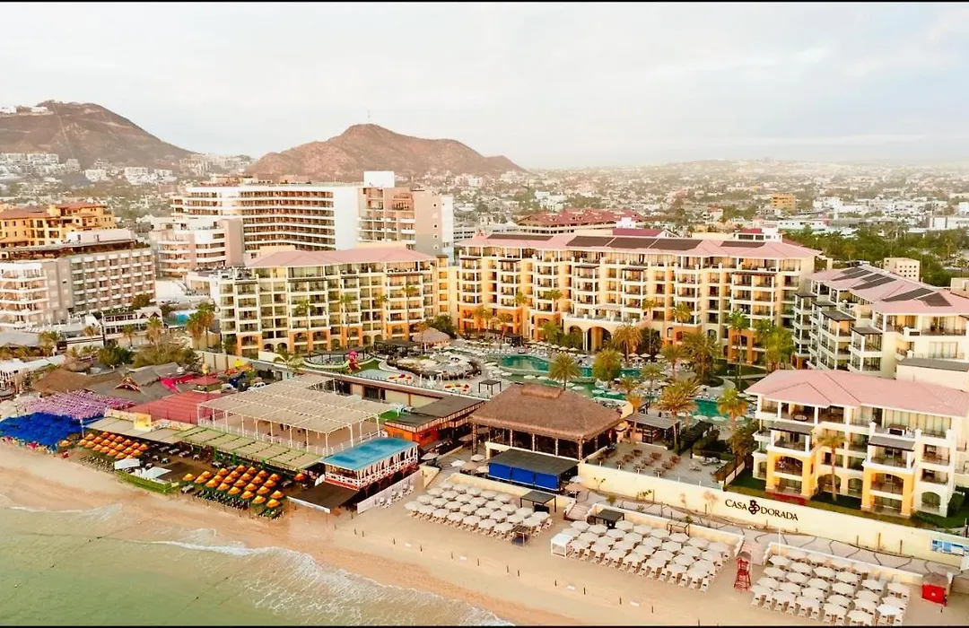 Casa Dorada Los Cabos Resort & Spa is a five-star oceanfront sanctuary overlooking the swimmable blue flag Medano Beach. The resort features 181 suites and a wide array of amenities, including an award-winning spa and multiple dining options, catering to families and pet-friendly travelers.