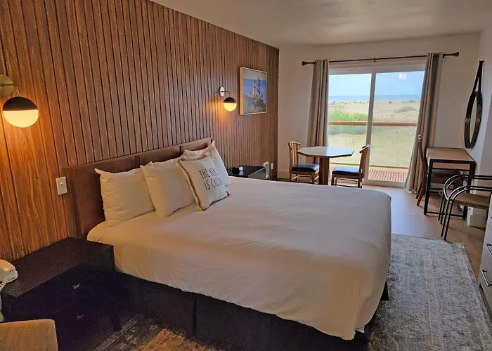 Guests can relax in the heated indoor pool or unwind in the hot tub. Outdoor activities include fire pits, beach biking, and access to the Discovery Trail for hiking and biking enthusiasts.