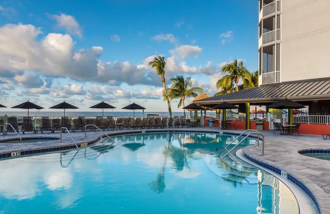 The hotel features a beachfront heated pool and two hot tubs, providing a relaxing space for guests. Nearby activities include excursions to Lovers Key State Park, visits to the Edison & Ford Winter Estates, and shopping at local boutiques. The local beach trolley facilitates easy exploration of Fort Myers Beach.