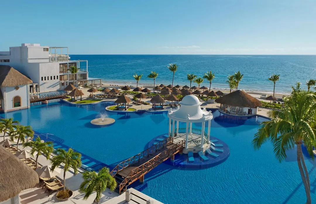 Dreams Sapphire Resort & Spa offers a luxurious all-inclusive experience with a family-friendly focus, located just 15 minutes from the Cancun airport. This 5-star Puerto Morelos hotel features a waterpark, multiple pools, and a variety of dining options.