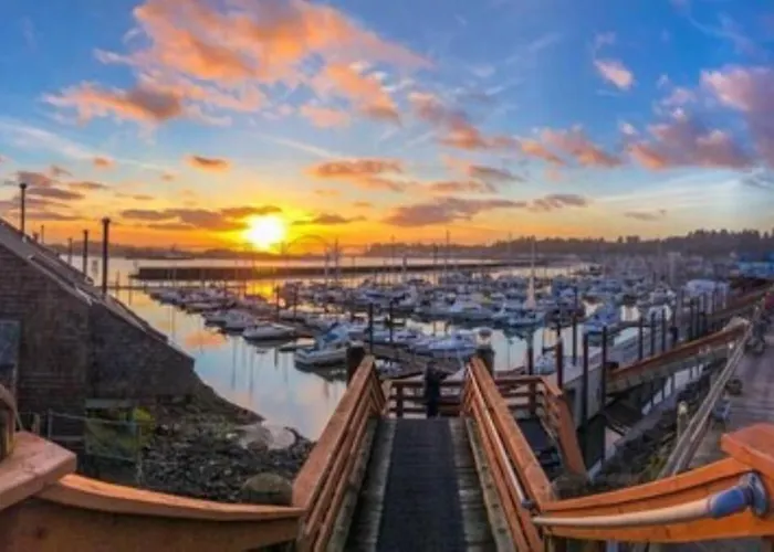 Leisure facilities at Embarcadero Resort include an indoor saltwater pool, spas, and saunas. Guests can engage in various activities like whale watching and hiking, with scenic trails and local attractions such as the Pacific Maritime and Heritage Center just a short distance away.
