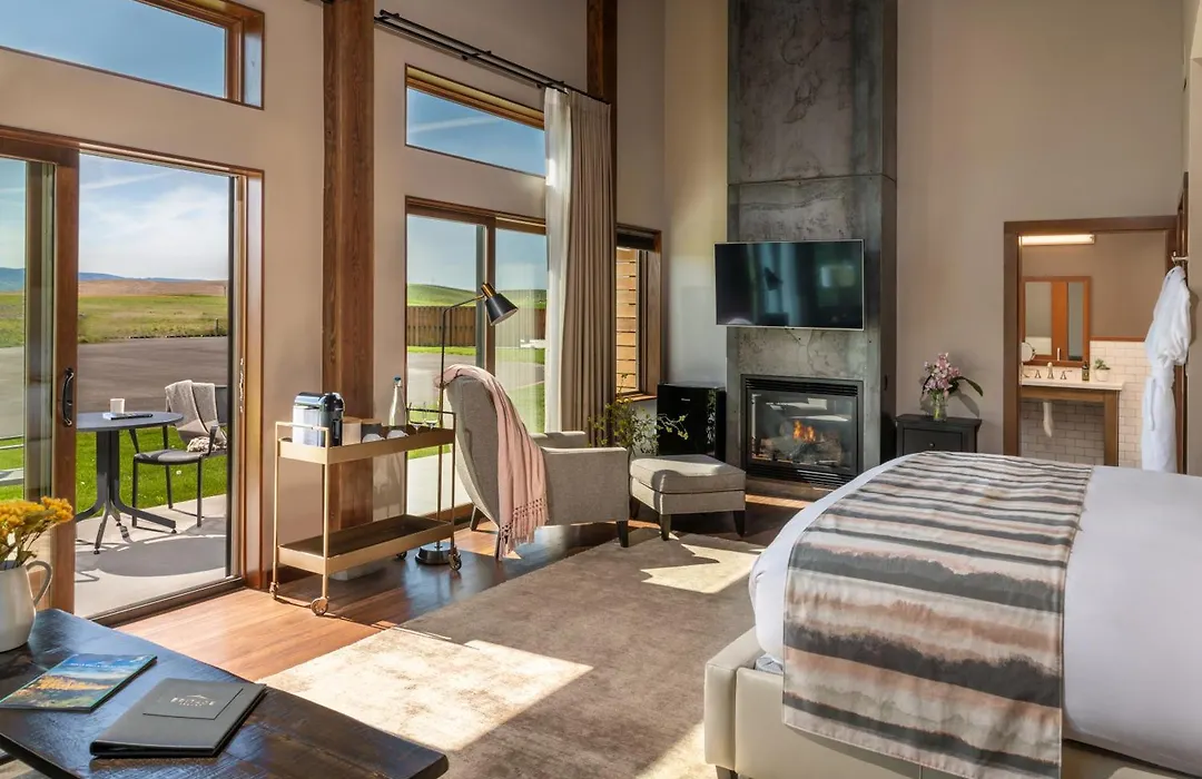 Each suite and bungalow at Eritage Resort features expansive views of the Blue Mountains, rolling farmland, and Lake Sienna. Accommodations include amenities such as flat-screen TVs, fireplaces, and private patios or decks. This intimate property ensures a unique experience in the Washington wine country.