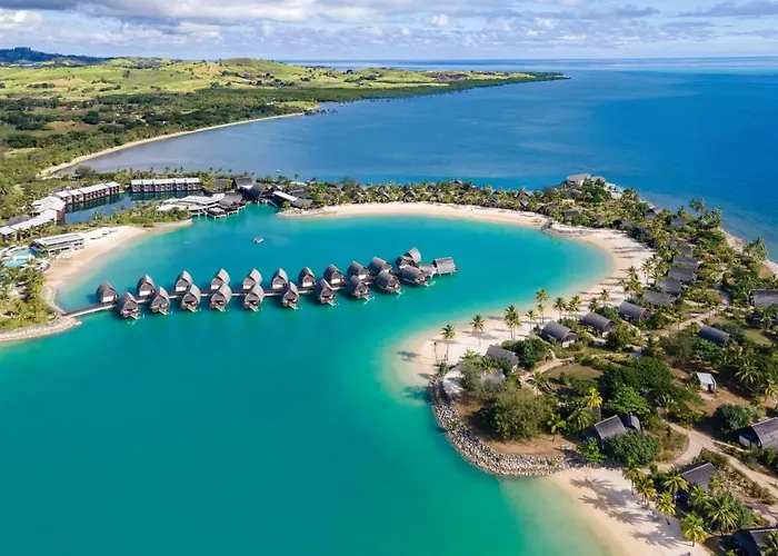 Fiji Marriott Resort Momi Bay is a 5-star resort featuring three expansive swimming pools and exclusive overwater bungalows. Guests can enjoy a diverse range of dining options and activities tailored for families and adults alike, set against stunning lagoon views.