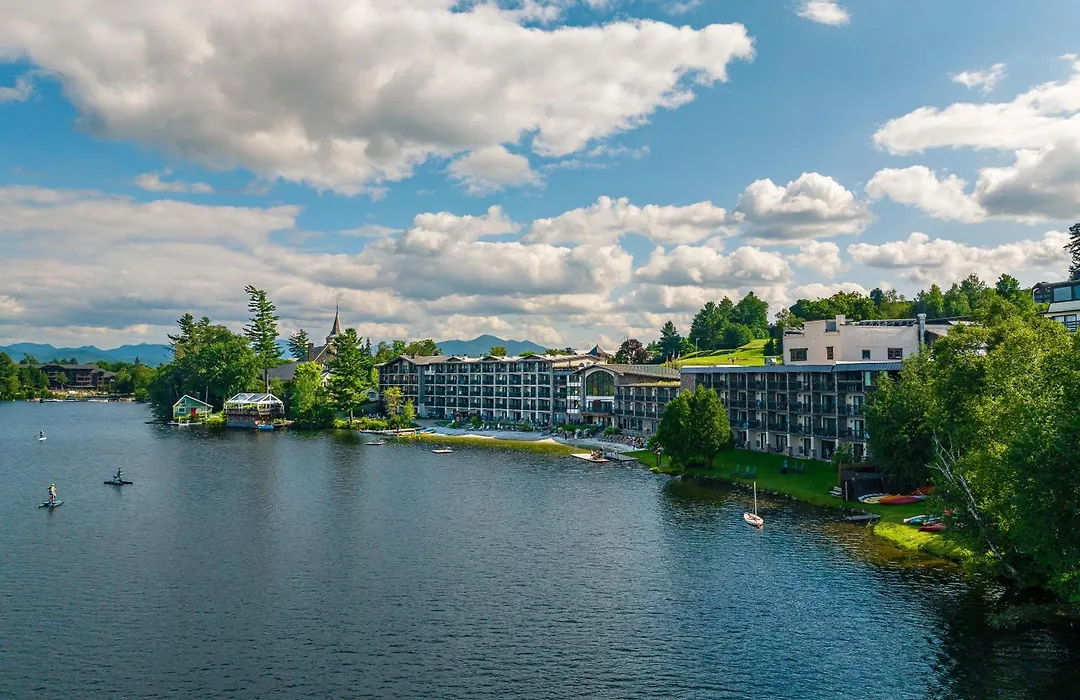 Golden Arrow Lakeside Resort emphasizes sustainability and offers eco-friendly amenities, including EV charging stations and a green roof. The resort is located near landmarks like the Olympic Center and Lake Placid Winter Olympic Museum, making it suitable for both leisure and events.