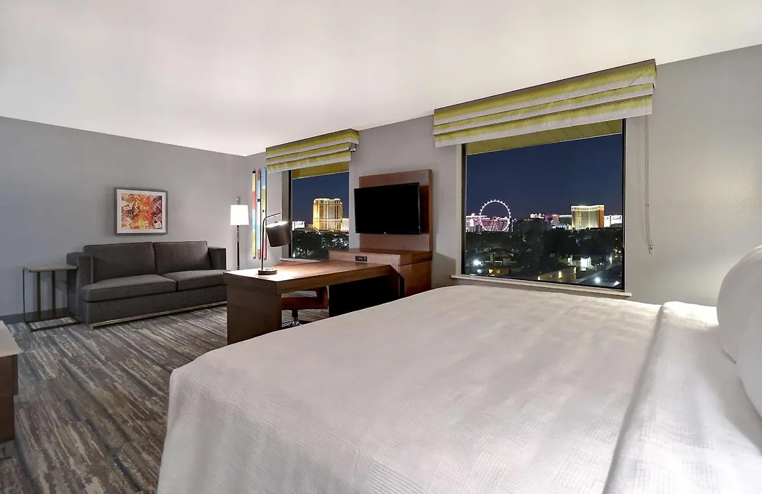 Hampton Inn & Suites Las Vegas Convention Center - No Resort Fee is a 3-star hotel offering modern accommodations with convenient amenities. Guests can enjoy free WiFi, an outdoor pool, and a daily complimentary breakfast. This pet-friendly hotel features a lobby lounge and meeting spaces.