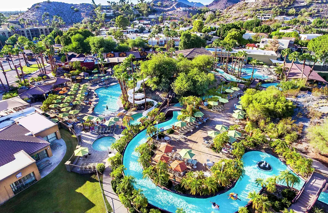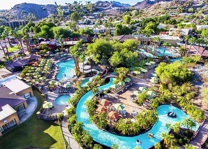 Hilton Phoenix Resort At The Peak features a four-acre waterpark, making it a family-friendly destination. Guests can enjoy all-suite accommodations and a full-service spa among its offerings. The resort is rated 7.0/10 on Booking.com.