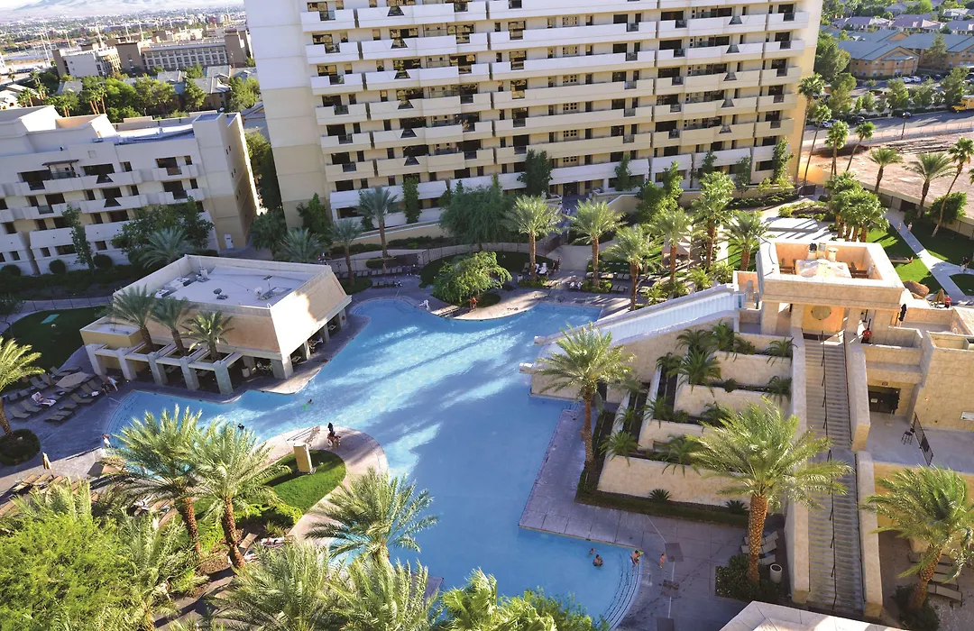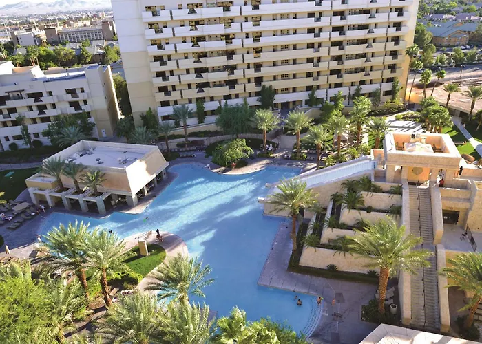 Hilton Vacation Club Cancun Resort Las Vegas, a 3-star hotel with an 8.2/10 rating on Booking.com, offers family-friendly accommodations with a range of amenities including spacious suites and pools. The hotel features multiple dining options and a variety of on-site recreational facilities.