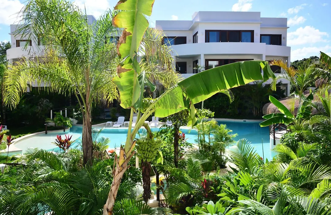 The outdoor area features extensive landscaping and tropical gardens, enhancing the natural beauty of the surroundings. The resort's pool area provides a spot for sunbathing and relaxation. Guests have access to nearby attractions, including various cenotes ideal for swimming and exploration.