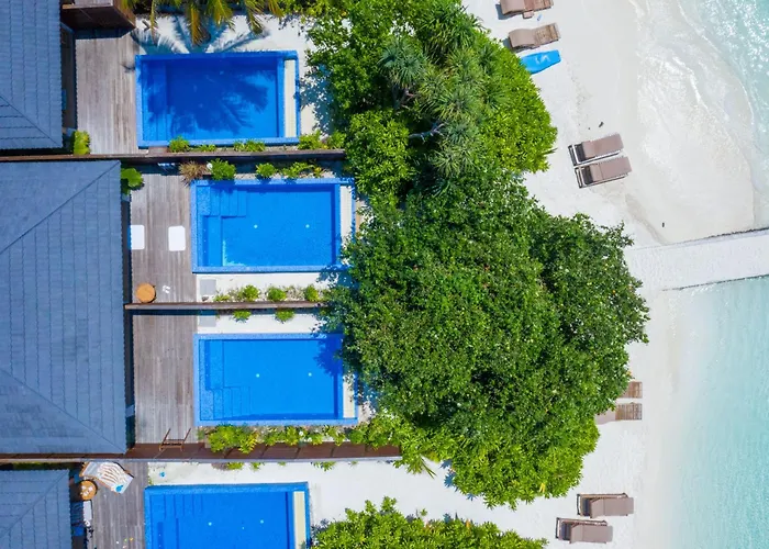 Lily Beach Resort And Spa, a 5-star Huvahendhoo Island hotel rated 9.5/10 on Booking.com, features luxurious villas, exquisite dining options, and an indulgent spa. Notable amenities include a stunning private infinity pool and a kid-friendly beach area.