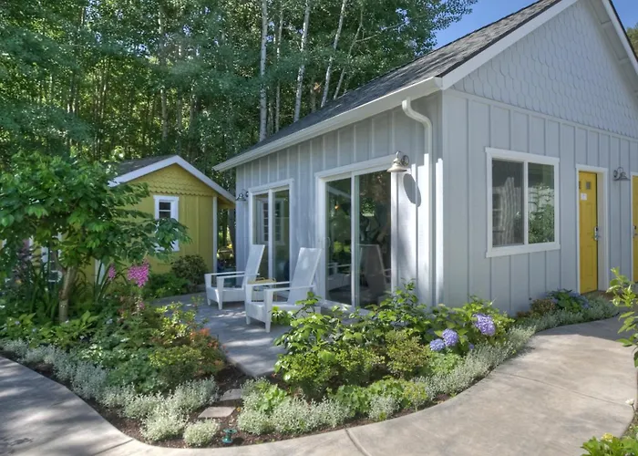 Leisure amenities feature an outdoor saline swimming pool, a hot tub, and tranquil gardens ideal for meditation. Guests can explore nearby attractions such as Lithia Park, the Oregon Shakespeare Festival, and the Pacific Crest Trail for outdoor activities.