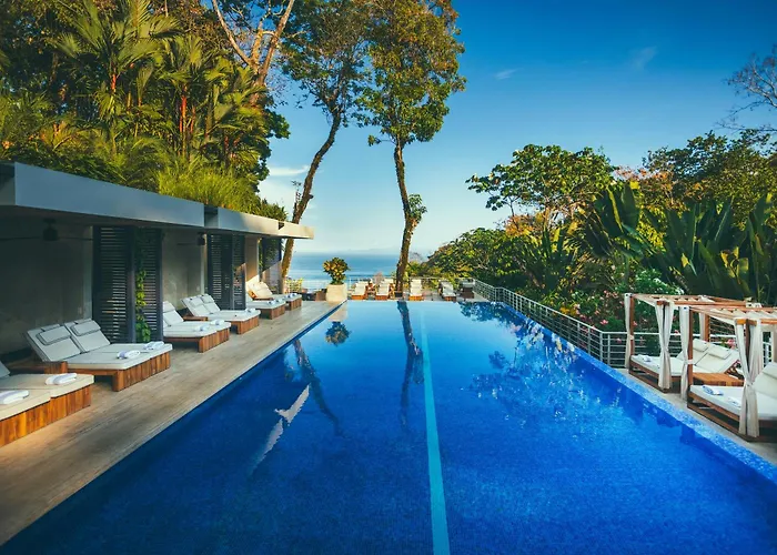 Los Altos Resort, a 5-star Manuel Antonio hotel with an 8.8 rating on Booking.com, features a private reserve and direct access to a secluded beach. Guests can enjoy high-end amenities including an infinity pool, Karola's gourmet restaurant, and the Orquidea spa.