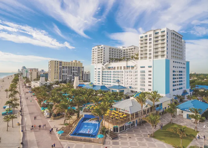 Margaritaville Hollywood Beach Resort is a 4-star family-friendly hotel showcasing beachfront access and multiple dining venues, including Margaritaville Restaurant and LandShark Bar & Grill. Guests enjoy amenities like a 24-hour fitness center, an adults-only rooftop pool, and the serene St Somewhere Spa, rated 9.0/10 on Booking.com.