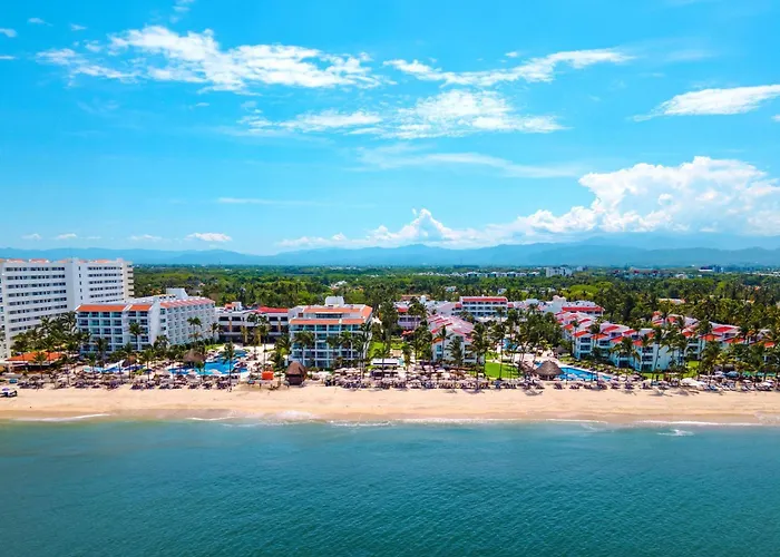 Marival Emotions Resort & Suites Riviera Nayarit By Mercure is a 5-star all-inclusive hotel in Nuevo Vallarta, offering extensive family-friendly amenities such as a children's beach club, a waterpark, and multiple dining options. This resort features a vibrant atmosphere with pools, sporting activities, and nightlife.