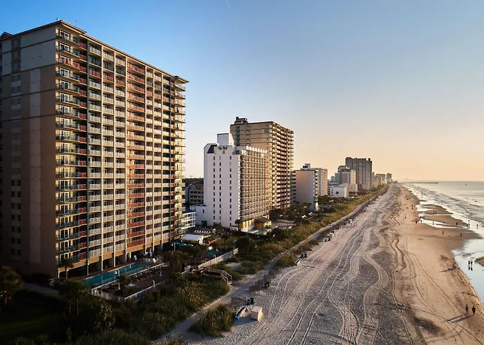 Paradise Resort features outdoor amenities such as a pool and direct beach access for leisure activities. Families can also enjoy amenities geared toward children, including playgrounds and water sports nearby. The hotel is positioned close to local attractions like Family Kingdom Amusement Park and Myrtle Beach Boardwalk.