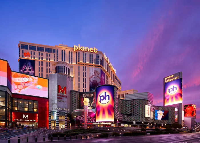 The 4-star Planet Hollywood Resort & Casino provides a vibrant blend of luxury accommodations, extensive gaming options, and diverse dining experiences. This Las Vegas hotel features a full-service spa and direct access to over 170 upscale stores and 15 restaurants at the Miracle Mile Shops.