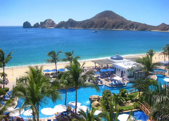 Pueblo Bonito Los Cabos Blanco Beach Resort, a 5-star cabo san lucas hotel, features Mediterranean style architecture, direct access to Medano Beach, and views of Land's End. Guests have access to three restaurants and bars, a large free-form swimming pool, and a full-service spa.