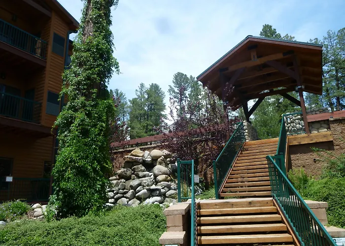 Ruidoso River Resort Condos, a 4-star family-friendly property, offers spacious accommodations along the Rio Ruidoso, combining the charm of a cabin experience with modern amenities. Guests can enjoy a beautifully landscaped courtyard with a waterfall and outdoor grilling facilities.