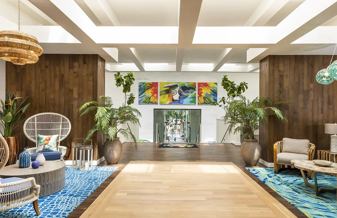 The Riviera Resort Palm Springs includes two pools-Paradise Pool and Oasis Pool-along with a comprehensive spa offering massages and skin therapies. The Fins Up Fitness Center provides state-of-the-art equipment, ensuring guests can maintain their workout routines. The hotel also features event spaces for meetings and gatherings.