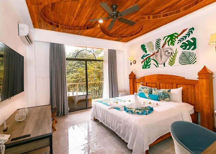 The hotel is conveniently located just a 2-minute walk from Manuel Antonio Beach and 1 miles from Playitas Beach. Guests can access local transportation options, including the Quepos bus terminal, which is a short walk away. The hotel is 9.5 miles from La Managua airport.