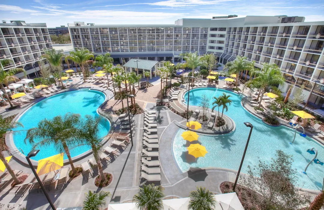 Sheraton Orlando Lake Buena Vista Resort features two outdoor pools, one with a 79-foot waterslide. A range of family-friendly activities, including Dive-In Movies and crafts, are available to keep guests entertained, while the Top of the Palms Spa offers rejuvenating treatments.