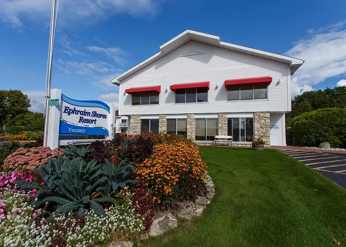 Ephraim Shores Resort offers family-friendly accommodations along Eagle Harbor, featuring amenities such as an indoor pool, private sundeck, and fully equipped rooms. The 3-star resort boasts an outdoor dining area and easy access to local attractions like restaurants and shops.