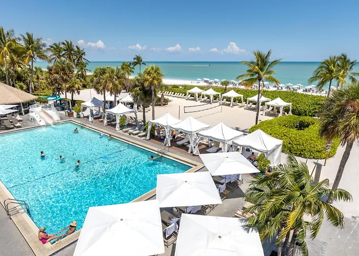Sundial Beach Resort & Spa, a 4-star Sanibel hotel rated 7.9/10 on Booking.com, features a beachfront setting with five dining options, state-of-the-art tennis facilities, and family-friendly activities. The resort offers multiple swimming pools, children's activities, and extensive meeting space for events.
